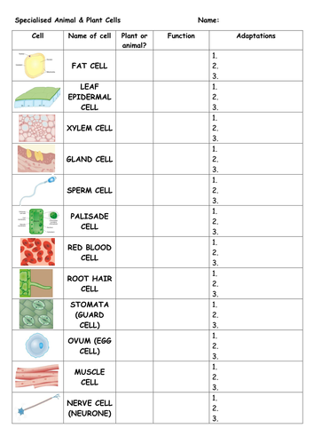Specialised cells worksheet | Teaching Resources from dryuc24b85zbr.cloudfront.net We did not find results for: Maybe you would like to learn more about one of these? Plant and animal cells ks3 worksheet. Check spelling or type a new query.